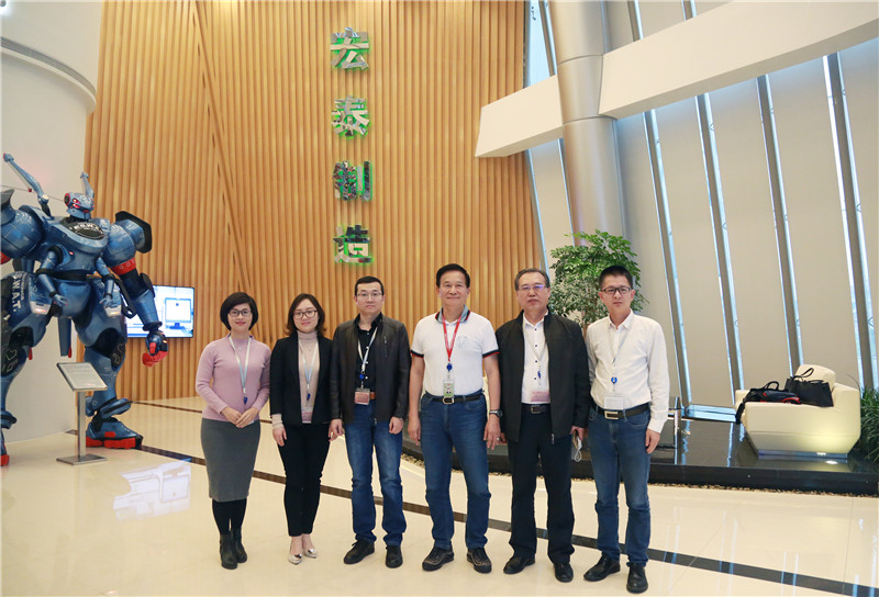 图为工作组与宏泰机电董事长曾琦博士(右三)合影