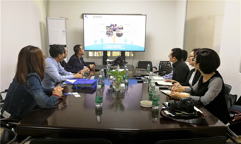 图为工作组观看昌龙汽车企业介绍PPT