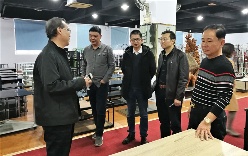 图为工作组参观新佳美家具展厅