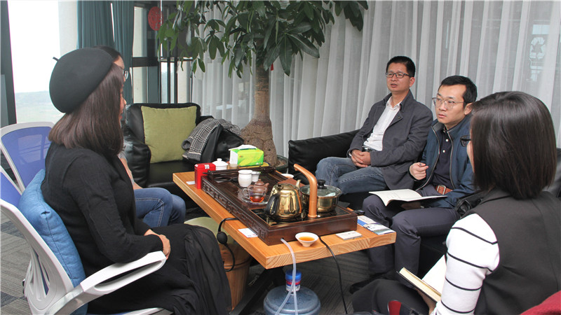 图为和动力智能科技公司董事长佘漳南介绍企业发展情况