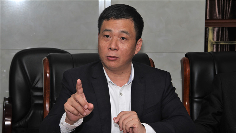 图为皓尔宝董事长朱文明介绍企业发展情况