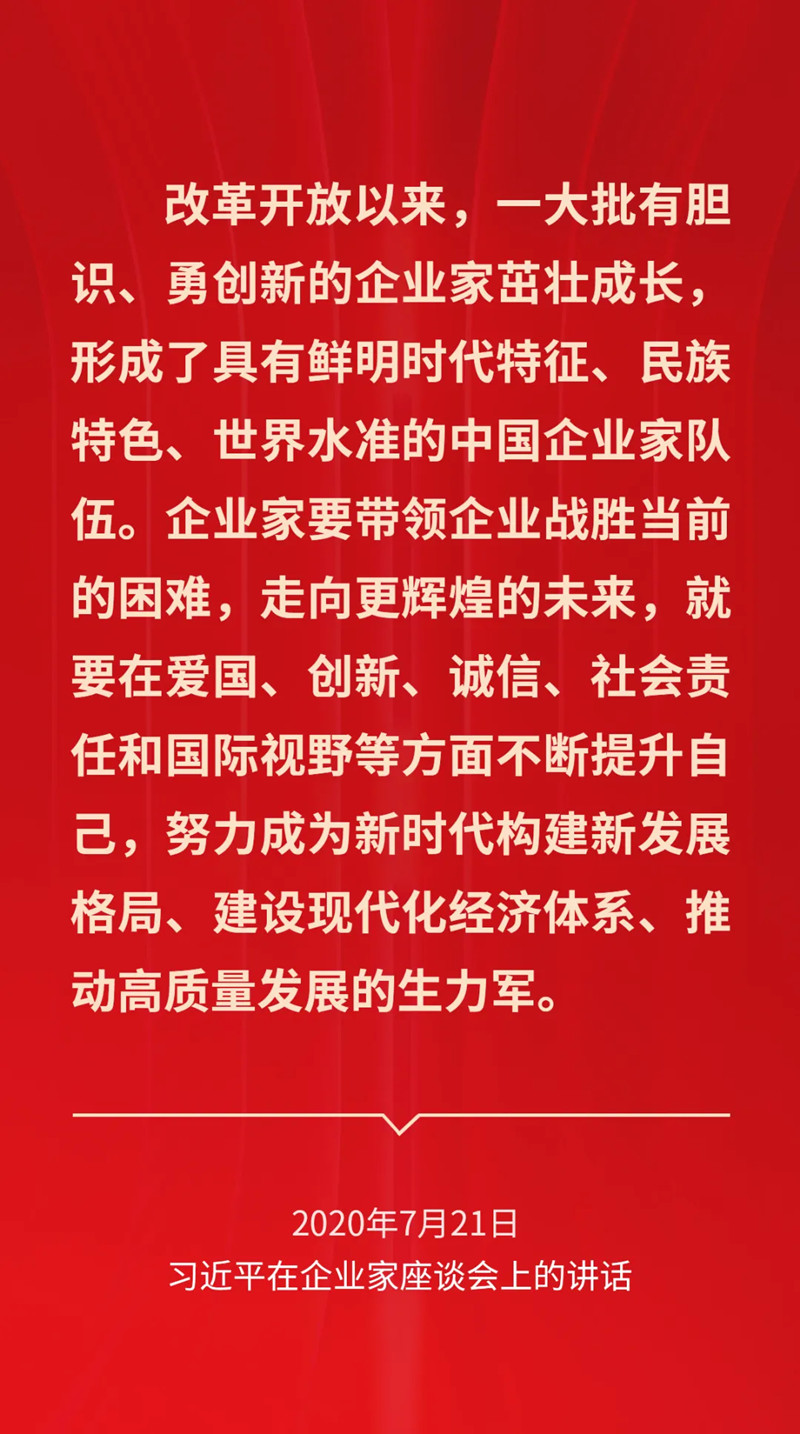 党的十八大以来,习近平总书记多次强调“弘扬企业家精神”,激励广大企业家在实现经济健康发展、高质量发展中发挥重要作用。今天,一起来学习领会习近平总书记的部分相关重要论述。