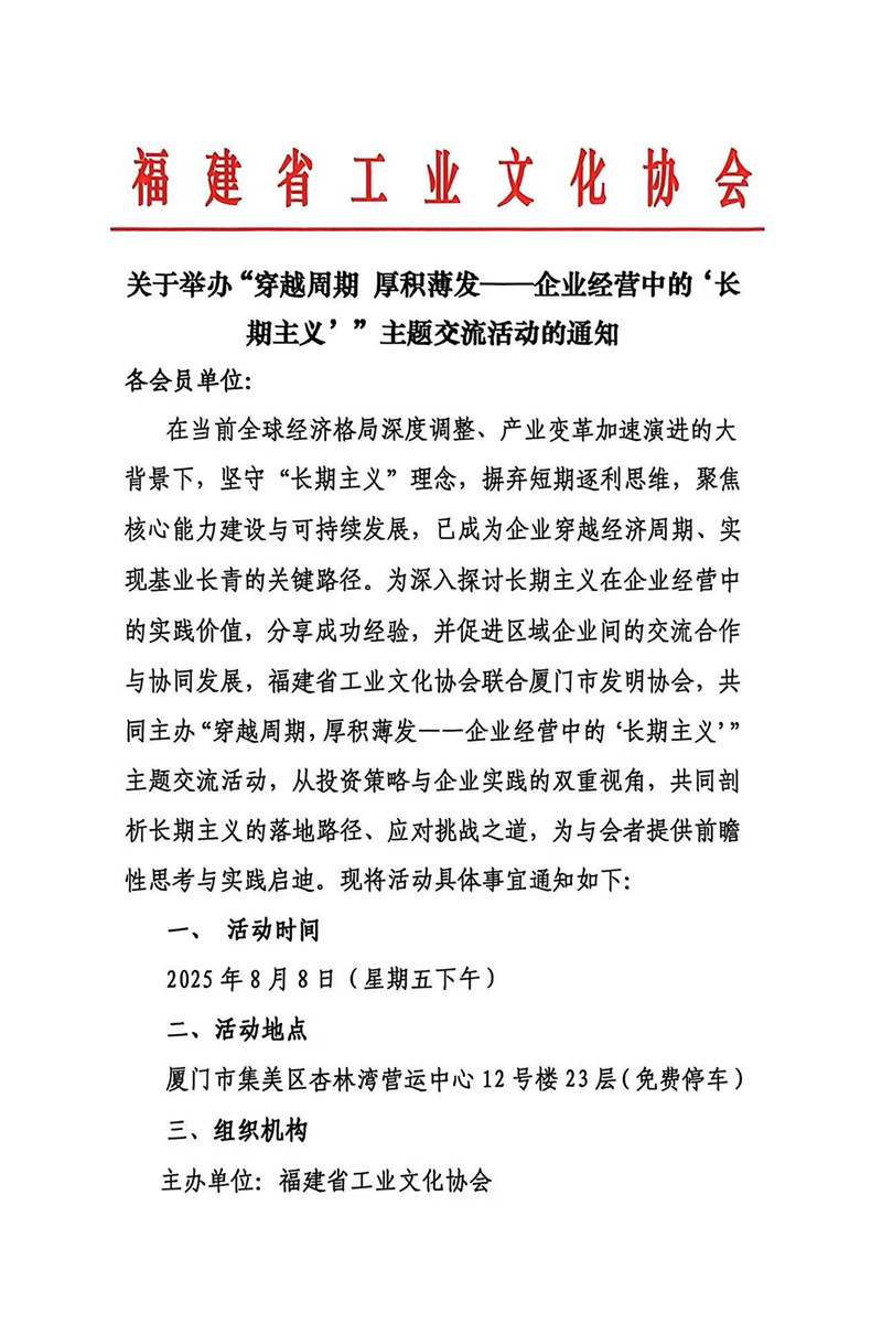 关于举办“穿越周期 厚积薄发——企业经营中的长期主义”主题交流活动的通知
